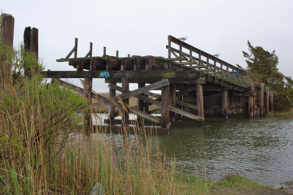 I remember walking the bridge’s cedar planks in my youth, leaning against the waist-high railing and looking north at the miles of marshlands. Sometime after my college years, a fire burned out the bridge, erasing the near-half of its span, so it’s not really even a bridge anymore. More like Nowhere, Squared.