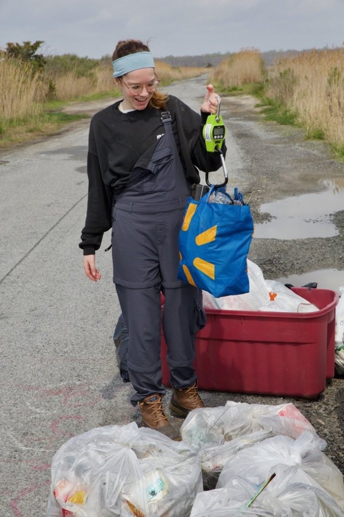 Back down by the car, we chat with Brittany McLaughlin, an executive assistant and community engagement coordinator for the conservation group Save Barnegat Bay. It’s a town-wide volunteer trash collection day, and McLaughlin is leading the efforts at this outpost.